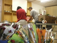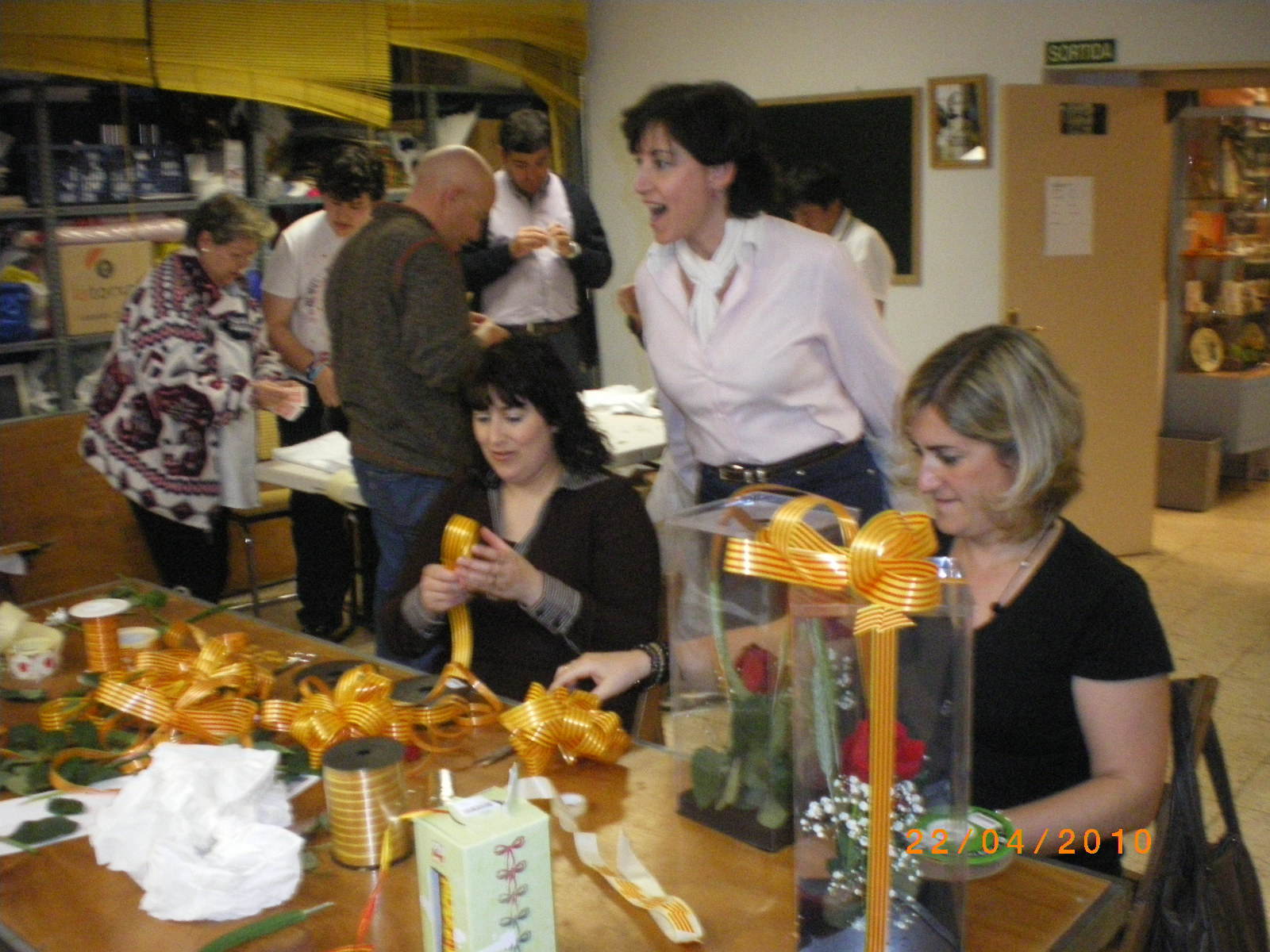 El muntatge de les roses a la nostra seu social a Lleida, prèvia als actes del dia 23 d'abril.
